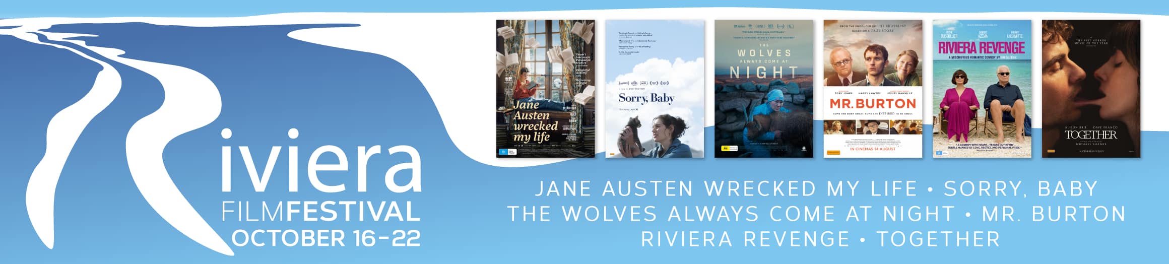 From 16 October RFF - JANE AUSTEN WRECKED MY LIFE (M) Session Times:Thu 16th Oct: 4:30pmRFF Sun 19th Oct: 11:00amRFF Tue 21st Oct: 2:30pmRFF From 16 October RFF - MR. BURTON (M) Session Times:Fri 17th Oct: 10:00amRFF Sun 19th Oct: 1:00pmRFF Wed 22nd Oct: 12:00pmRFF From 16 October RFF - RIVIERA REVENGE (M) Session Times:Thu 16th Oct: 12:30pmRFF Fri 17th Oct: 4:40pmRFF Sat 18th Oct: 12:30pmRFF From 16 October RFF - SORRY, BABY (M) Session Times:Fri 17th Oct: 12:30pmRFF Sat 18th Oct: 4:30pmRFF Tue 21st Oct: 10:00amRFF From 16 October RFF - THE WOLVES ALWAYS COME AT NIGHT (PG) Session Times:Thu 16th Oct: 2:30pmRFF Sat 18th Oct: 2:30pmRFF Tue 21st Oct: 4:30pmRFF From 16 October RFF - TOGETHER (MA15+) Session Times:Fri 17th Oct: 9:30pmRFF Sat 18th Oct: 9:30pmRFF Sun 19th Oct: 3:30pmRFF